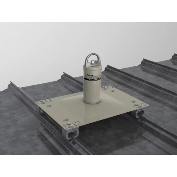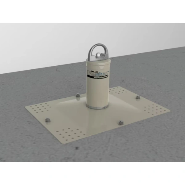 The versatile Miller Fusion™ Roof Anchor Post single-point anchor adapts to a wide range of roof designs including standing seam, membrane/built-up, metal sheathing, concrete and wood. The innovative base plate is designed for quick set-up with no need for roof surface penetration.